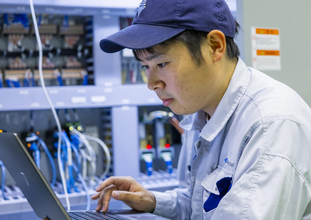 入社して最初の1〜2年は、機器の基本的な使い方や配線の方法など、基礎をじっくり学びました。電池のプラスとマイナスを正しくつなぐといった基本から始めて、産業用装置の仕組みや接続の特徴を少しずつ覚えていきました。そして3年目に、初めて一台の装置を最初から最後まで1人で担当することになりました。トラブルもなく無事に納めることができ、大きな自信に繋がりました。